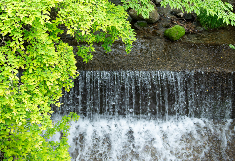 花場プラント事務所のすぐそばを流れる清らかな山水
